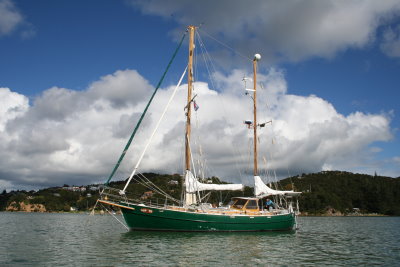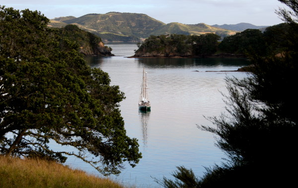 Lop to vor Anker am Okiato Point
