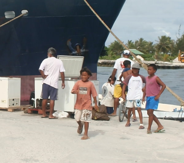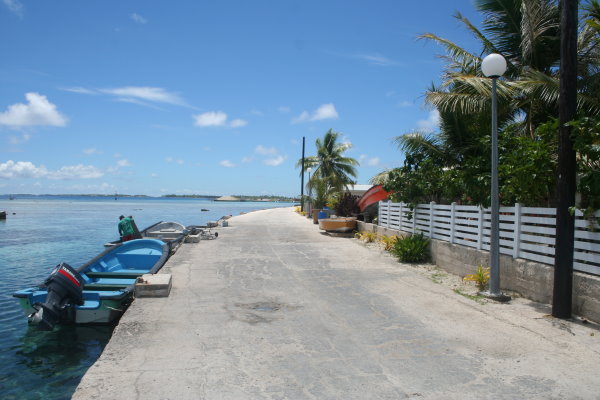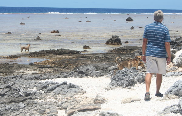 Spaziergang mit Hunden, die es auf jedem Motu zu Hauf gibt