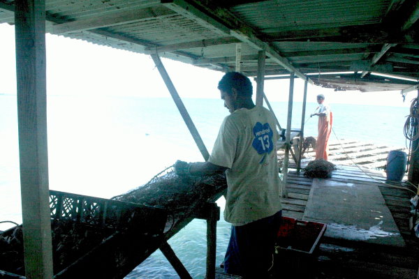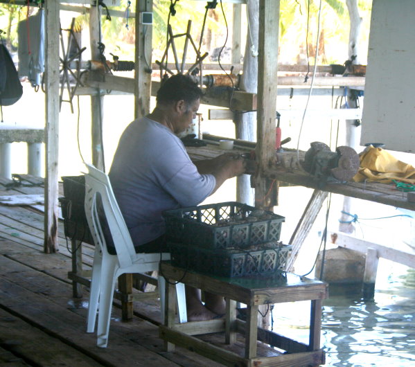 Arbeit auf einer Perlfarm