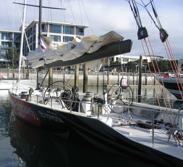im Auklandes Hafen bestaunt haben und koennen uns eine der Yachten im