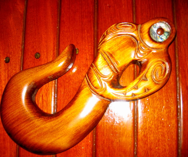 Eine Maori Schnitzerei. Sie steht fuer Staerke und Entschlossenheit und